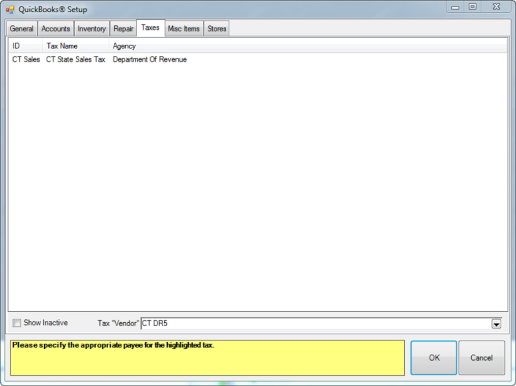 The Taxes tab is for identifying the vendors, or governmental body, to whom sales tax is paid. For each sales tax definition in The Edge: