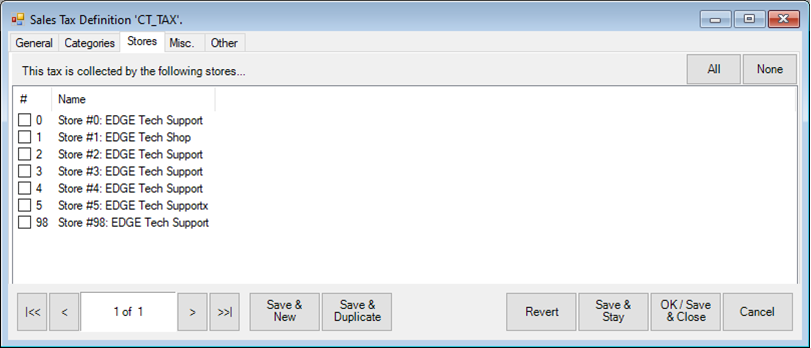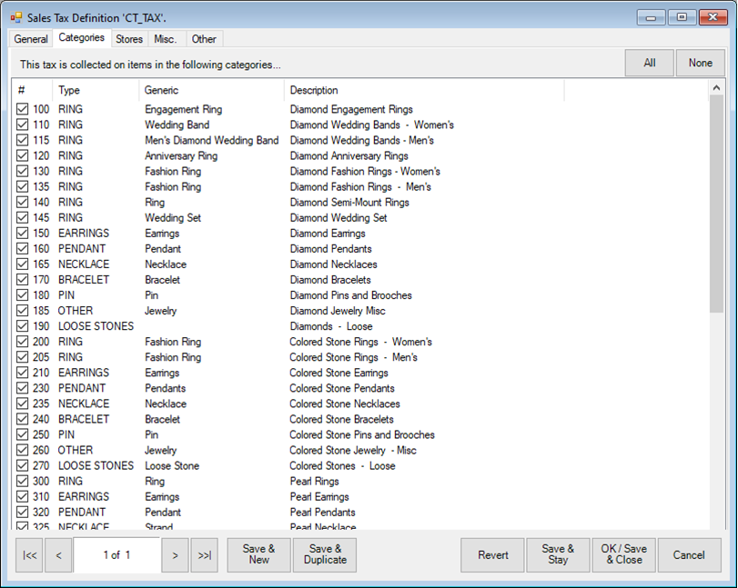 The Categories tab allows you to select categories of items for which the tax should be collected.