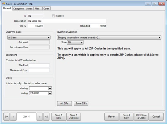 - Enter an ID for the tax and a description (e.g., TN and TN Sales Tax).