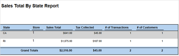 This report will breakdown the sales tax collected based on the state it was shipped to.
