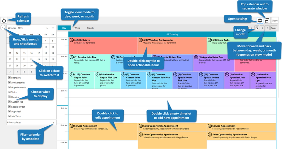 The Edge provides an interactive Store Calendar that allows you to see and act on: