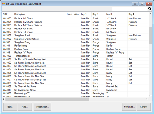 These will be needed to ensure repairs done on covered items are uploaded to JMIC correctly. After that, to see the list of SKUs for care plan repairs, go to Administrative > JM Care Plan Administration > Repair SKUs.