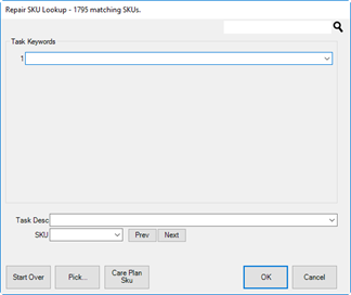 - From the Task Desc drop-down menu or SKU drop-down menu, select the desired repair.