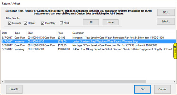 - Select Return/Adjust and locate the desired line item.