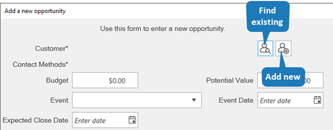 - Use the buttons in the top right to either find an existing customer or add a new one.