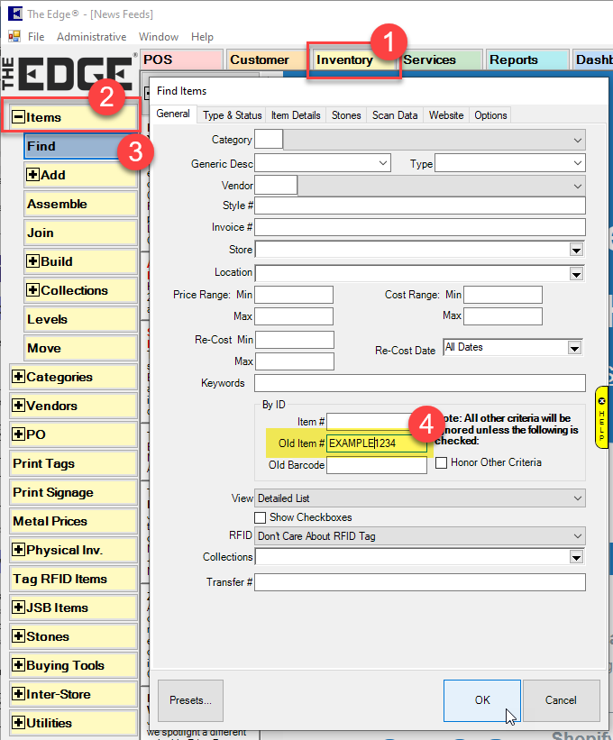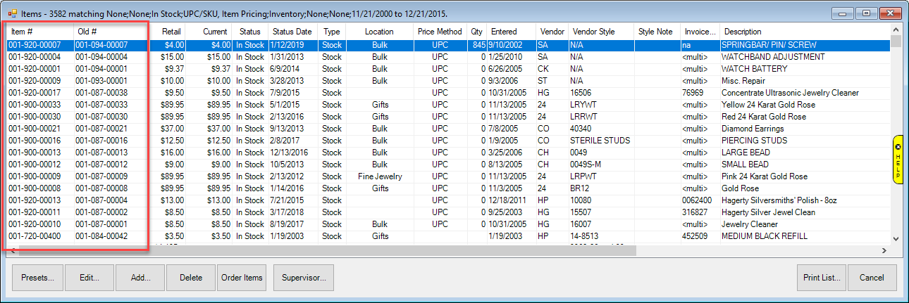 - Type your former item number in the Old Item # field.