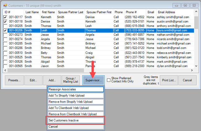 NOTE: If the customer has a spouse, you will need to either remove the spouse using the Supervisor button or mark them both inactive at this time (the software will give you the option).