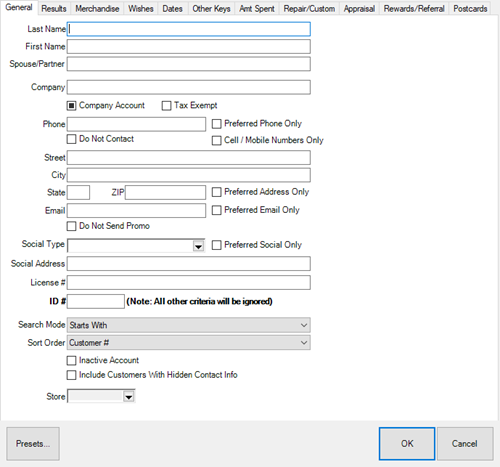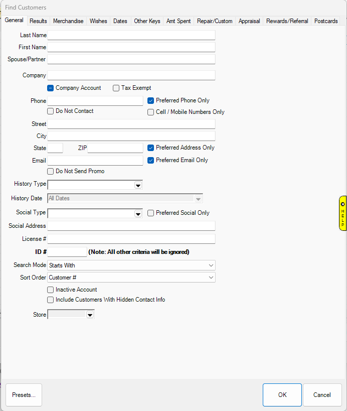 The Customer Find Filter is used to search for customers. Its capabilities range from simple searches, such as finding a customer by their phone number, to much more advanced queries, such as finding all customers who have purchased an item from a specific vendor during a designated time period.