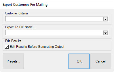 - If you wish to preview the export before it occurs check Edit Results Before Generating Output. This will give you a preview list where you can check/uncheck specific customers.