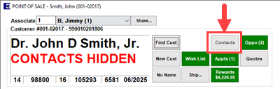 When a customer has the Hidden Contact option enabled their contact information and sales history will be hidden throughout the software.