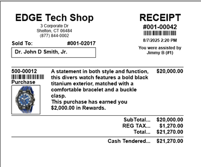 Similarly, the receipt will only show the ID and name.