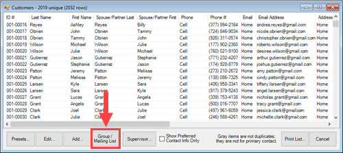 - Enter a name for this Group / Mailing List and click OK to save it. All the customers on this report will be included.