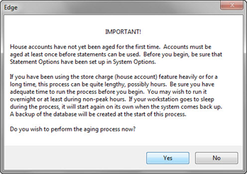 - Change the dates as needed and click OK. You will be prompted to confirm that you want to proceed with aging activities.