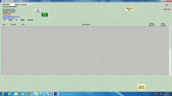 - Select Save to Wish List instead of taking payment and completing the sale. The Wish List window will appear.
