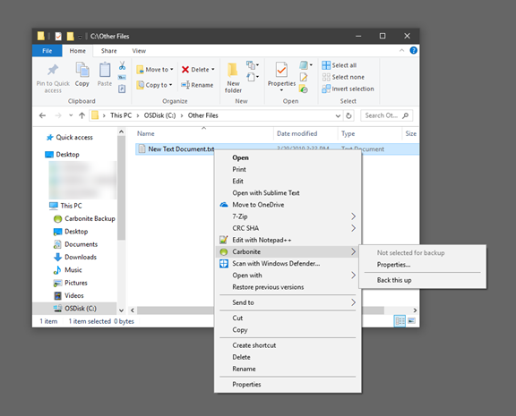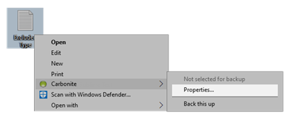 You can manually select data from the computer that has Carbonite installed by right-clicking on the files or folders within Windows File Explorer and clicking Carbonite; Back this up.