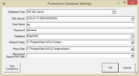 g. Photo Path: The PhotoPath refers to a folder that will hold all of your images for The Edge. It is strongly recommended you keep this in the same location as your database. By default, The Edge creates a photos folder with sample images in the default data path. Type in the path to the photo folder (e.g., \\servername\sharefolder\photos) or click directly on the PhotoPath line and use this button to browse for it. This should be the path to the photo folder created and shared on the server during server configuration.