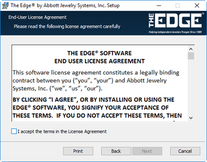 The Edge software must be individually installed on each PC that you intend to use. The same installation software is used for every computer.