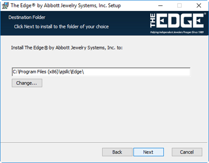 NOTE: This folder is NOT where The Edge database will reside. It is only the location of The Edge program files.