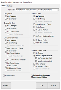 - By filtering based on date entered, only items entered in the past 480 days will be eligible for AIMS. This is recommended as most stores find they have a large amount of old items and running AIMS against the entire inventory results in an unmanageable number of items.