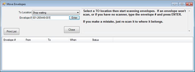 Using the Move and Done functions, you can track the location of a job. Use Services > Move Envelope or Services > Done to track item locations. There are now System Options that may require Who information concerning who performed the change.