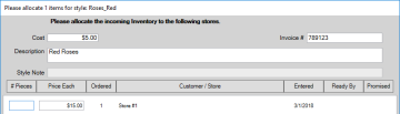 - The Allocate window will appear. Cost, Description, and Price Each will prefill based on what was entered last shipment.