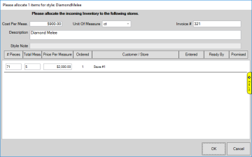- Enter vendor and vendor style number. The Allocate window will appear.