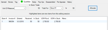 NOTE: If you have open orders waiting for this style or if you are part of a multistore setup you may see additional allocation rows.