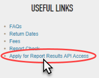 - On the right, find the Useful Links section and click the Apply for Report Results API Access link.