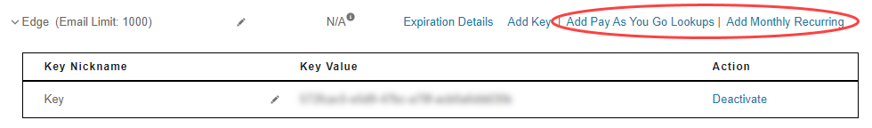 - Your plan will now show up at the bottom. Click either the Add Pay As You Go Lookups or Add Monthly Recurring link depending on how you want to pay for lookups. You can always change this later.