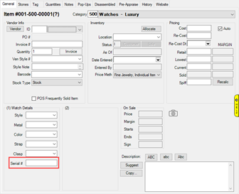 When adding or editing items in this category, Serial # will now appear as a detail.