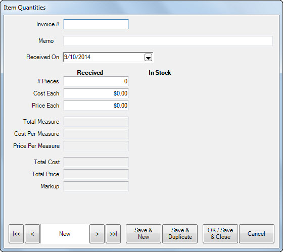 Although you will probably add inventory from invoice as described in the section entitled Add Item from Invoice, you can do so here.