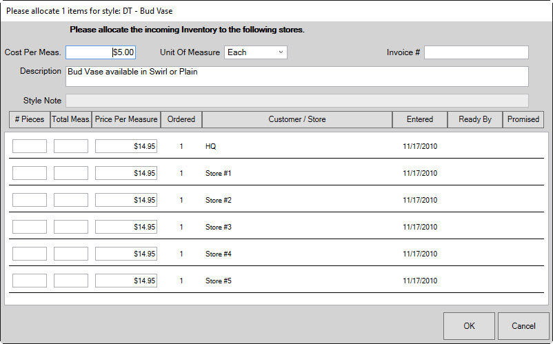 - Select OK/Save & Close. The Allocate window will appear.