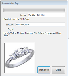 - From the Inventory menu, select Tag RFID Items. The Scanning for Tag window will appear.