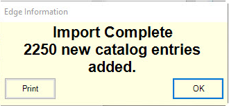 The Edge supports the importation of vendor catalog files. When imported, the catalog file does not create new in-stock items, but rather provides data about a particular vendor style for quick entry when the real items are ordered or entered.
