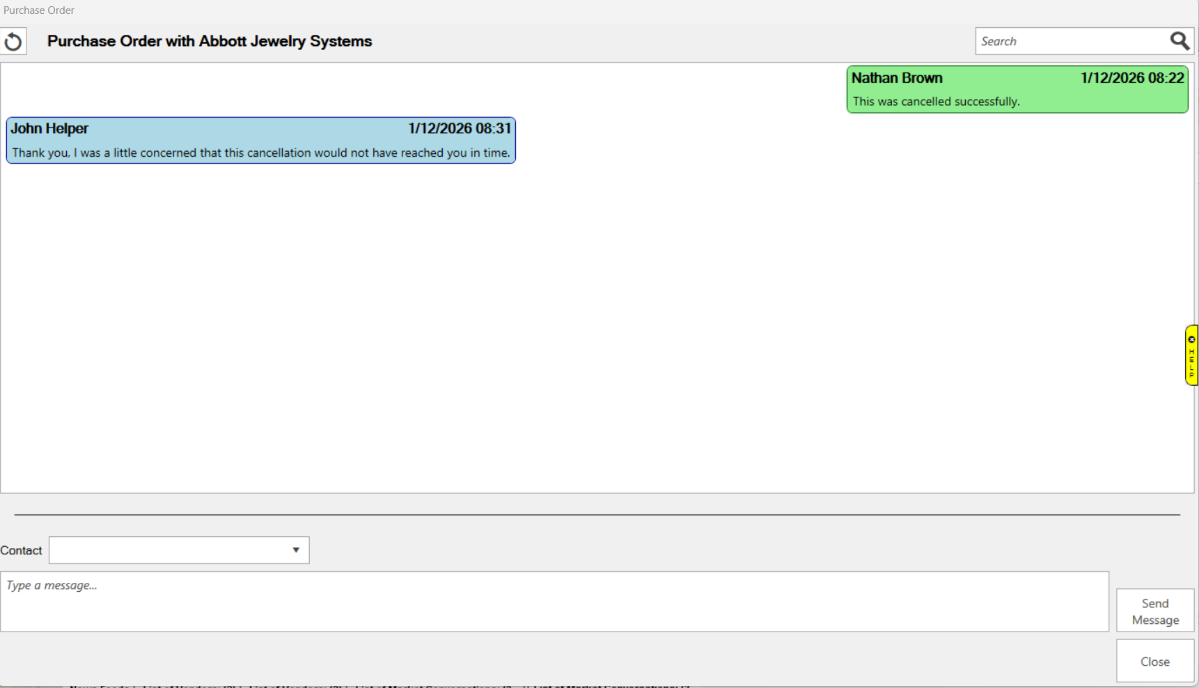 This is where you will see your communication with this vendor. Your messages will be on the left, and theirs will show on the right. |