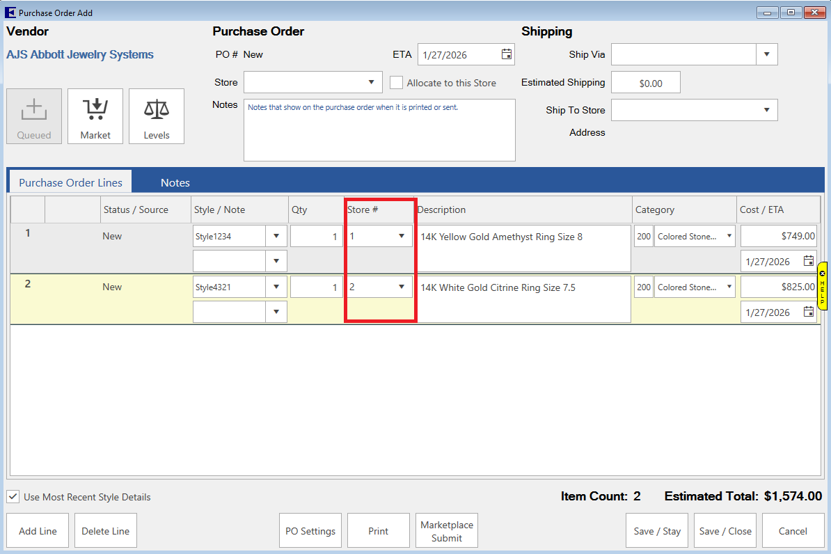 Each PO line item can also be assigned to a store.