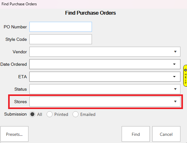 The Find Orders and Ordered Items filters have also been updated to allow you to search by store.