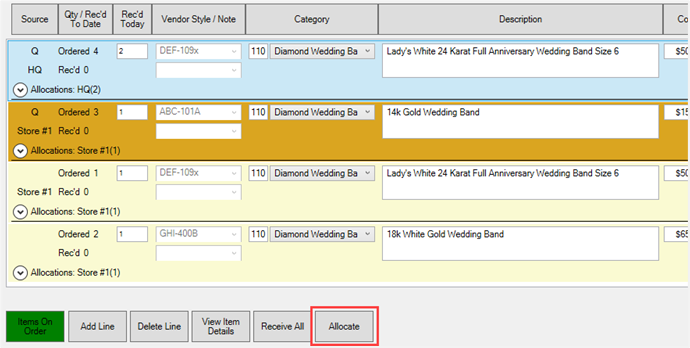 - To change the store allocation, click on the line and use the Allocate button at the bottom.