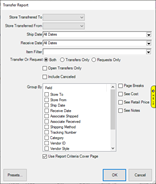 This report allows you to specify criteria and can be used to report on open, closed, and cancelled transfers.