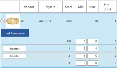 Minimum and maximum stock quantities can be set for each style. When the Reorder Form/Report is run, it will suggest ordering items to maintain the stock levels you set. Style levels can be managed at the company level (all stores) or individually by store.