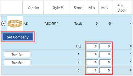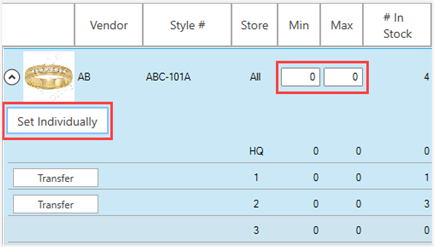 Enter desired Min and Max quantities. In this example, we are setting by store.