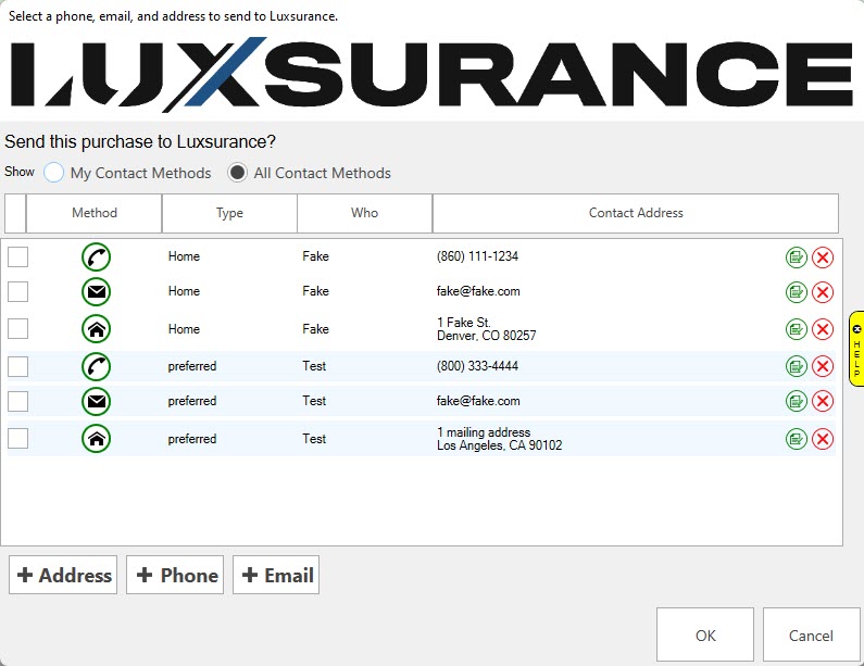 Click OK to send the purchase to Luxsurance then Done to complete the sale: