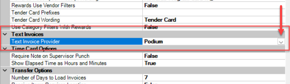 2. Search or scroll down to the Text Invoices section and locate the option named Text Invoice Provider.