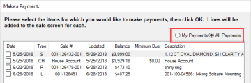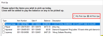 The System Option controls the default setting but can still be changed live at POS. The Pick Up and Payment screens contain a radio button in the top right that controls whether to show available transactions for just this customer, or for the customer and their spouse/partner.