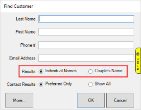 When selecting the customer at POS, the Results option defines whether you want to select them individually or as a couple.