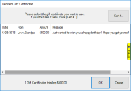 - Click the Gift Cert button. The Redeem Gift Certificate window will appear.