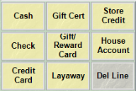 The Tender Options section of POS allows you to select one or more methods of payment to complete the sale. To enter payment, select the payment method and enter the amount. To remove a payment, select it and use the Del Line button.