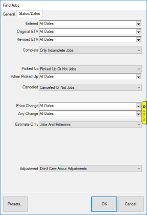 - Enter desired criteria, then click OK. A list of matching jobs will appear.