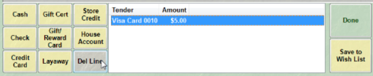 - Before selecting Done, select the tender line from the tender area of the Point of Sale window.