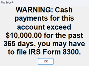 A System Option was added that allows you to set the number of days back Edge will check for tender collected. By default this number is set to 365 days, and if this number has been met, will prompt a warning dialog to open at POS when completing the transaction that a customer has met or exceeded the threshold.